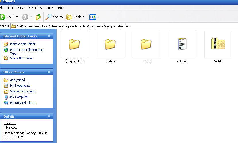 | The left WIRE folder is the extracted one, the right is the ZIP file i accidentally put into the addons. Thanks for your help, Littleboyred! -Greenhourglass |